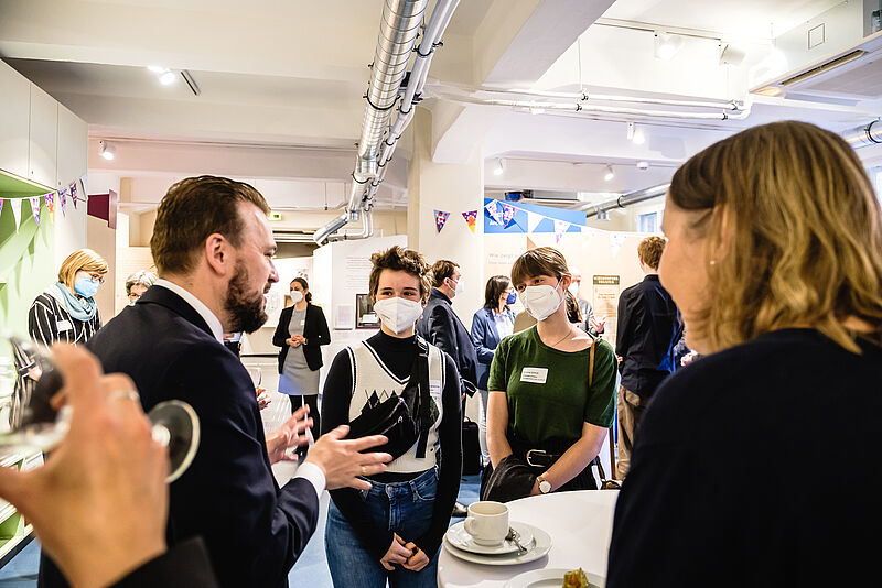 Im Rahmen des 20-jährigen Jubiläums der Freiwilligendienste Kultur und Bildung fand im Anne Frank Zentrum, einer Einsatzstelle in Berlin, eine Veranstaltung statt, bei der neben zahlreichen Vertreter*innen des Deutschen Bundestages auch der Parlamentarische Staatssekretär Sven Lehmann vom Bundesministerium für Familie, Senioren, Frauen und Jugend (BMFSFJ) teilnahm, um damit das große Engagement der Freiwillige in Kultur und Bildung zu würdigen.