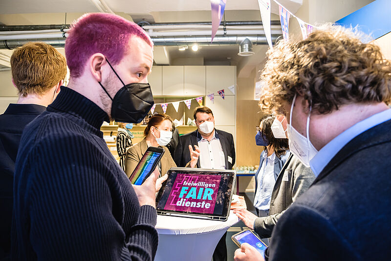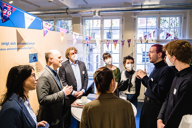 Im Rahmen des 20-jährigen Jubiläums der Freiwilligendienste Kultur und Bildung fand im Anne Frank Zentrum, einer Einsatzstelle in Berlin, eine Veranstaltung statt, bei der neben zahlreichen Vertreter*innen des Deutschen Bundestages auch der Parlamentarische Staatssekretär Sven Lehmann vom Bundesministerium für Familie, Senioren, Frauen und Jugend (BMFSFJ) teilnahm, um damit das große Engagement der Freiwillige in Kultur und Bildung zu würdigen.
