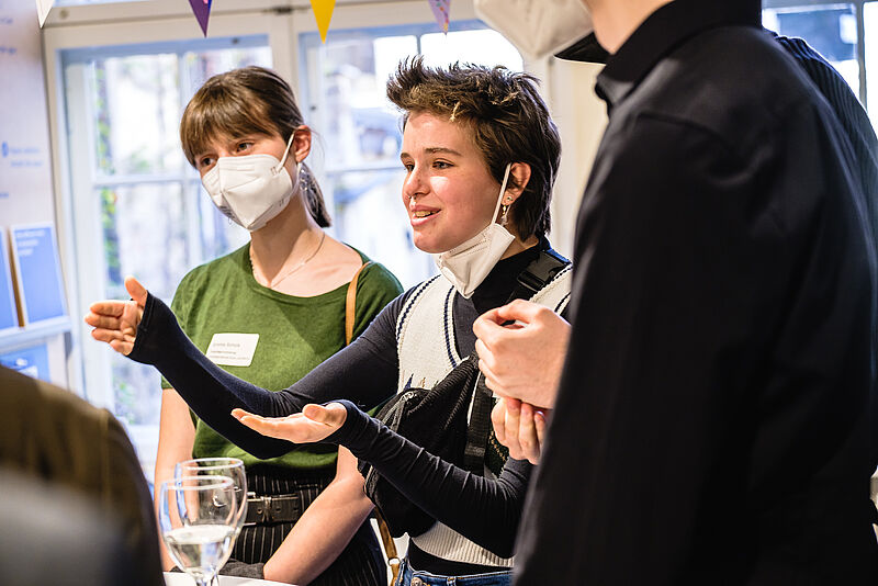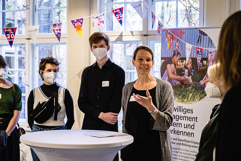 Anwesende Parlamentarier nutzten die Möglichkeit mit ehemaligen und aktuellen Freiwilligen über ihre Freiwilligendienste ins Gespräch zu kommen. Dabei waren vier Vertreter*innen der aktuellen Bundesfreiwilligenvertretung. Sie forderten u. a. Freiwilligendienste in das Bundesteilhabegesetz aufzunehmen: „Freiwilligendienste sollten ins Bundesteilhabegesetz aufgenommen werden, weil das FSJ für jeden zugänglich sein sollte und damit jede*r die Chance hat, die Hilfe zu bekommen, die er oder sie braucht, ohne dass die Einsatzstellen dafür aufkommen müssen. Das wäre ein sehr wichtiger Schritt, damit z. B. Personen mit Behinderung einen besseren Zugang zum FSJ bekommen“, betont Emma, Freiwillige im Staatsarchiv Ludwigsburg in Baden-Württemberg und Mitglied der Bundesfreiwilligenvertretung.